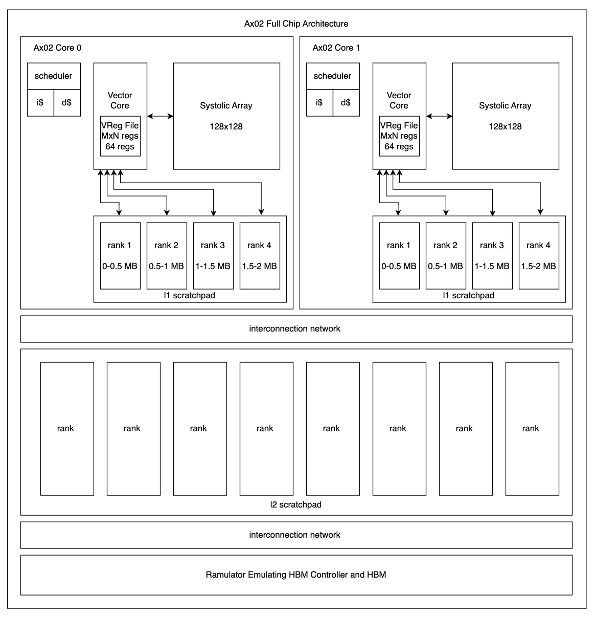 | Scratchpad (SCPAD) | 1MB SRAM, 2 partitions | SDMA only | Low |