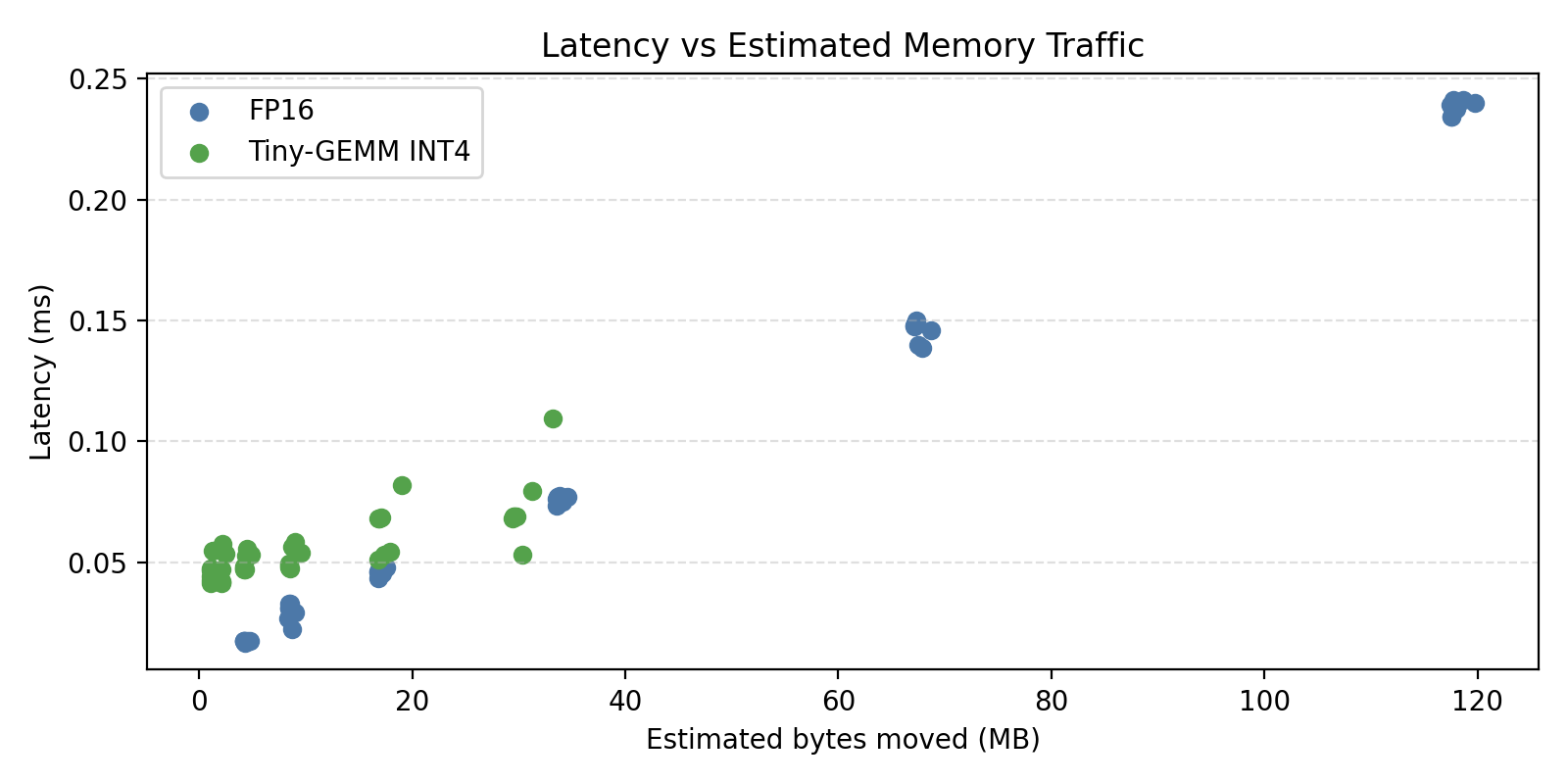 There's a broader systems lesson here too: reducing bandwidth pressure doesn't automatically improve latency if the freed capacity gets consumed by something else. Quantization is only effective when arithmetic intensity is high enough to amortize the dequantization overhead — and that threshold is measurable. The model isn't hard to derive; you just have to actually measure it instead of assuming.